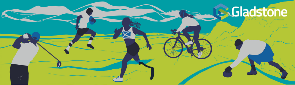 The client, Gladstone MRM, are a software company developing leisure management systems, and they wanted to brighten up their Glasgow office with a design featuring outdoor sports on a Scottish background.